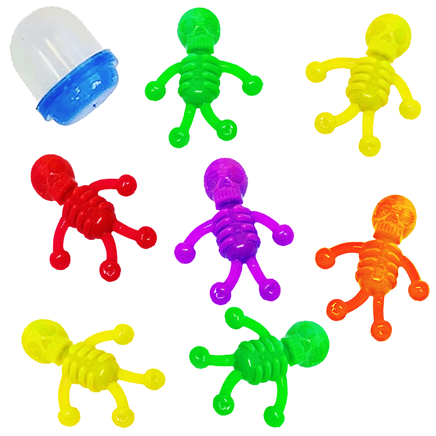 Веселые и забавные игрушки в виде скелетиков. В миксе есть обычные силиконовые и светящиеся скелетики.